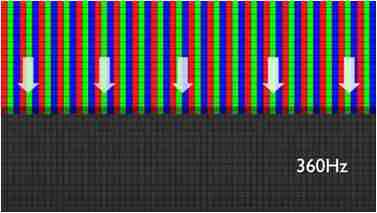 传统液晶驱动是从左到右单向进行,,,在画面更新速度愈来越愈快的情况下,,,,位于驱动线路末端的右下角区域,,,,画素的闸极来不及在短时间内获得足够电压,,,,无法显示出正确的颜色资讯。。。 |