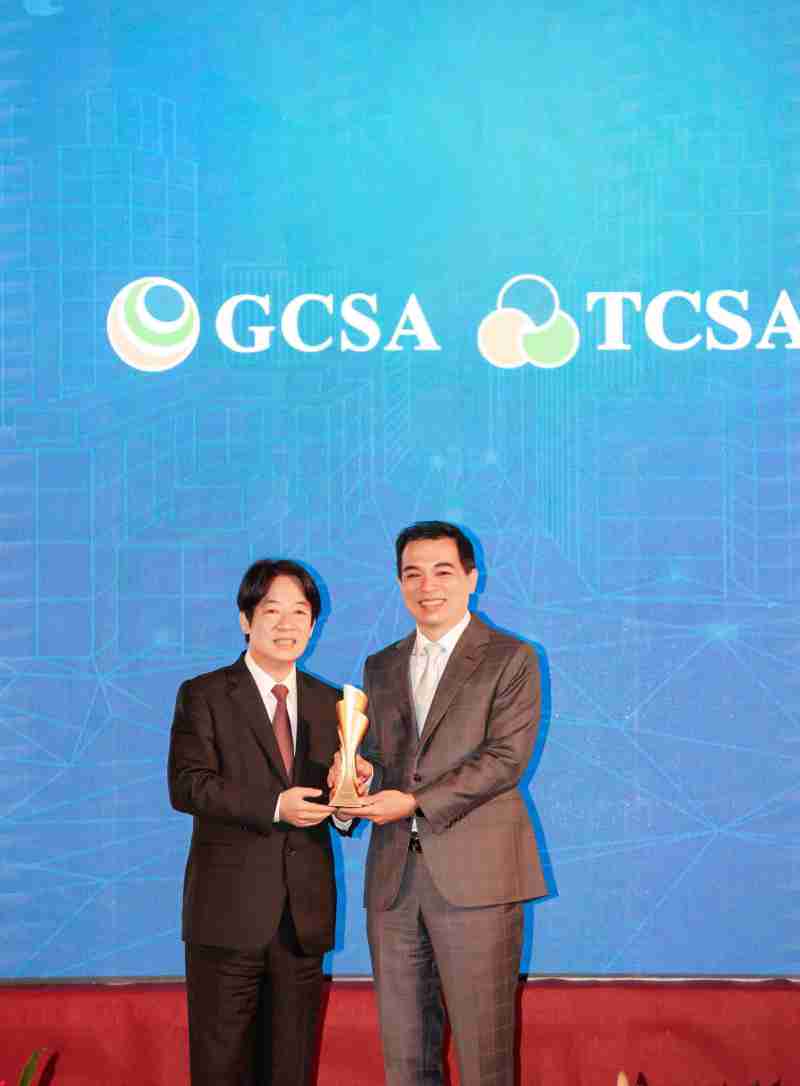 达全方位永续表现获全球永续奖及台湾永续奖肯定,,,,由副总统赖清德颁奖 (左),,,,人生就是博总经理柯富仁 (右) 代表领奖
