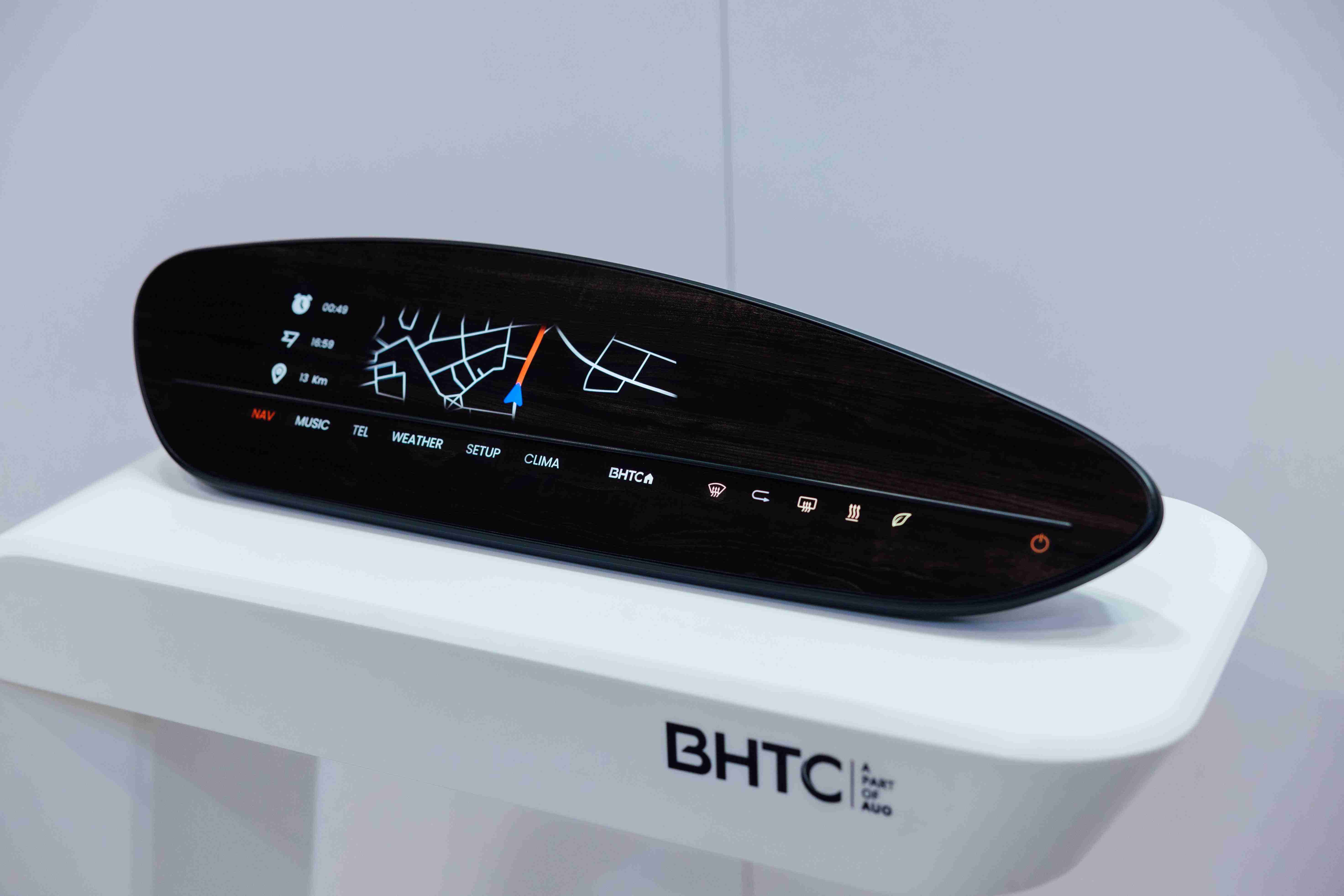 BHTC的木纹车用显示器(Display Behind Wood)将无缝木质表面与显示器结合后,,,,可以融入车内设计中,,提供驾驶优质的视觉效果,,,加上其无边框的设计和亮度调控,,创造更优质的车内体验。。。