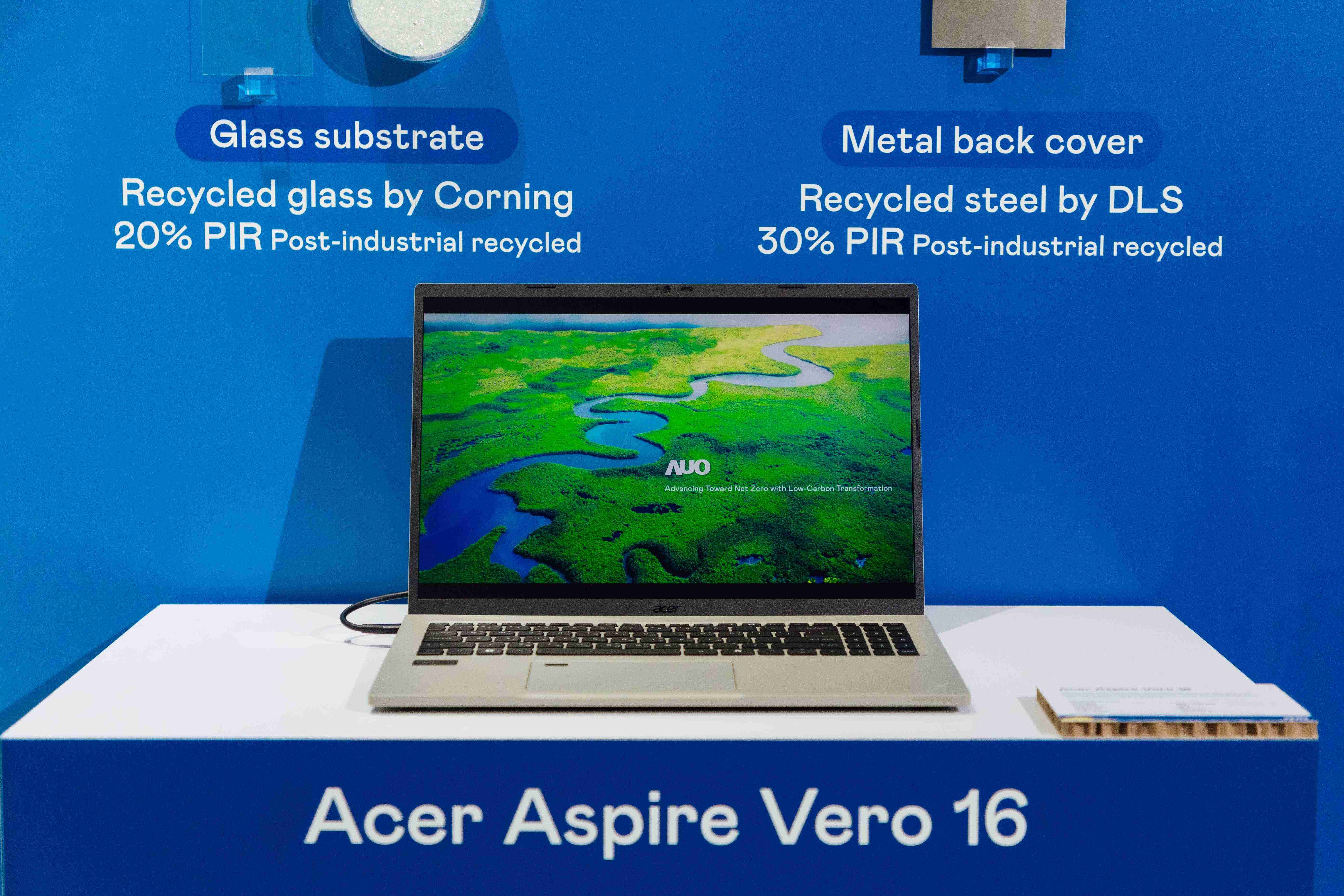 全球首款笔记型电脑采用人生就是博100%绿电制造的面板,,,,结合PCR外亦使用工业后回收材料(PIR),,,,例如回收玻璃和金属,,,减少对环境的影响。。