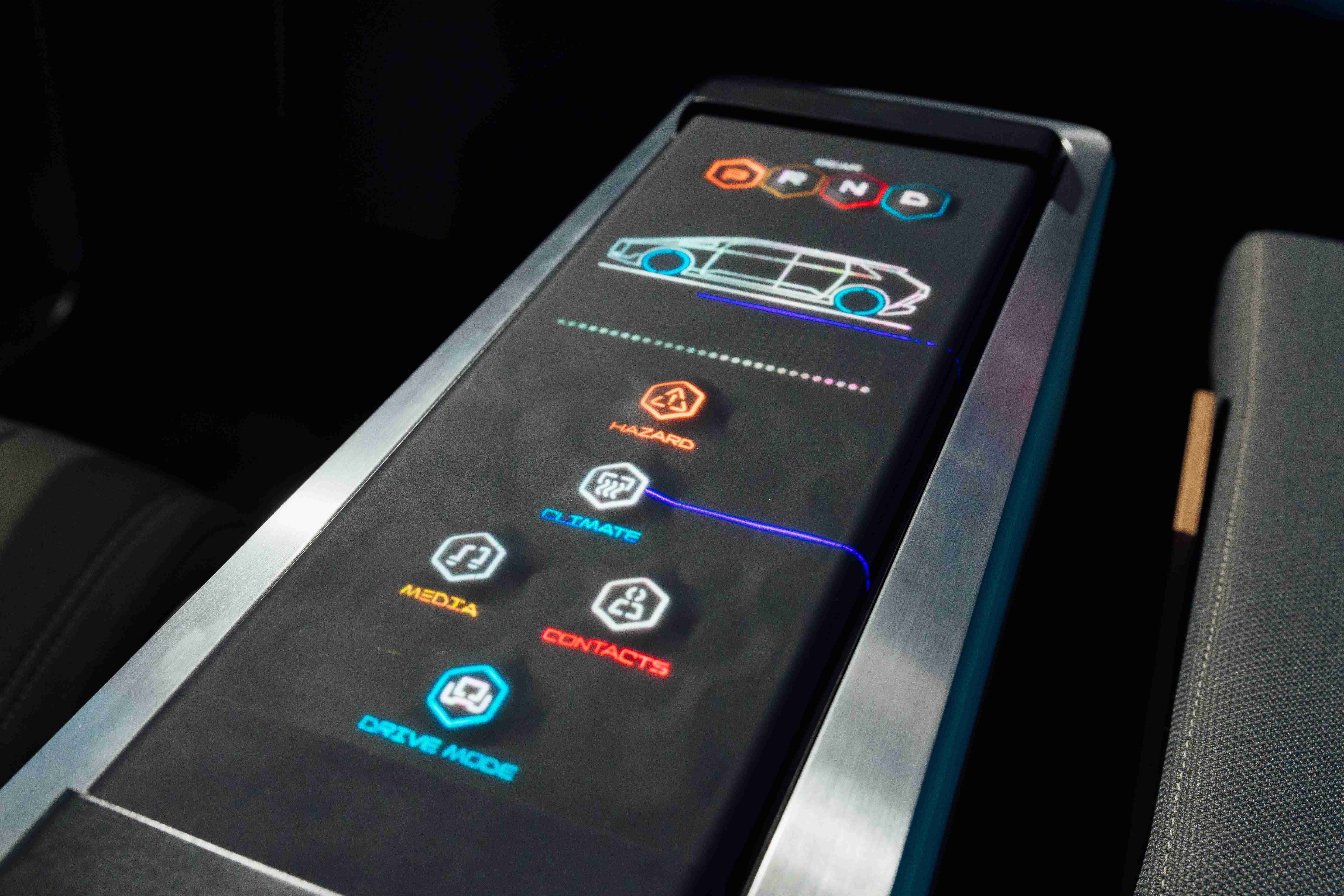 多变形态中控显示(Morphing Center Control)拥有动态变化的表面,,,平时常态显示车辆功能,,进一步操作时,,,则会隆起成为3D 按钮,,,并在触控时以震动回馈,,,以精细的操作开创人机互动新境界。。
