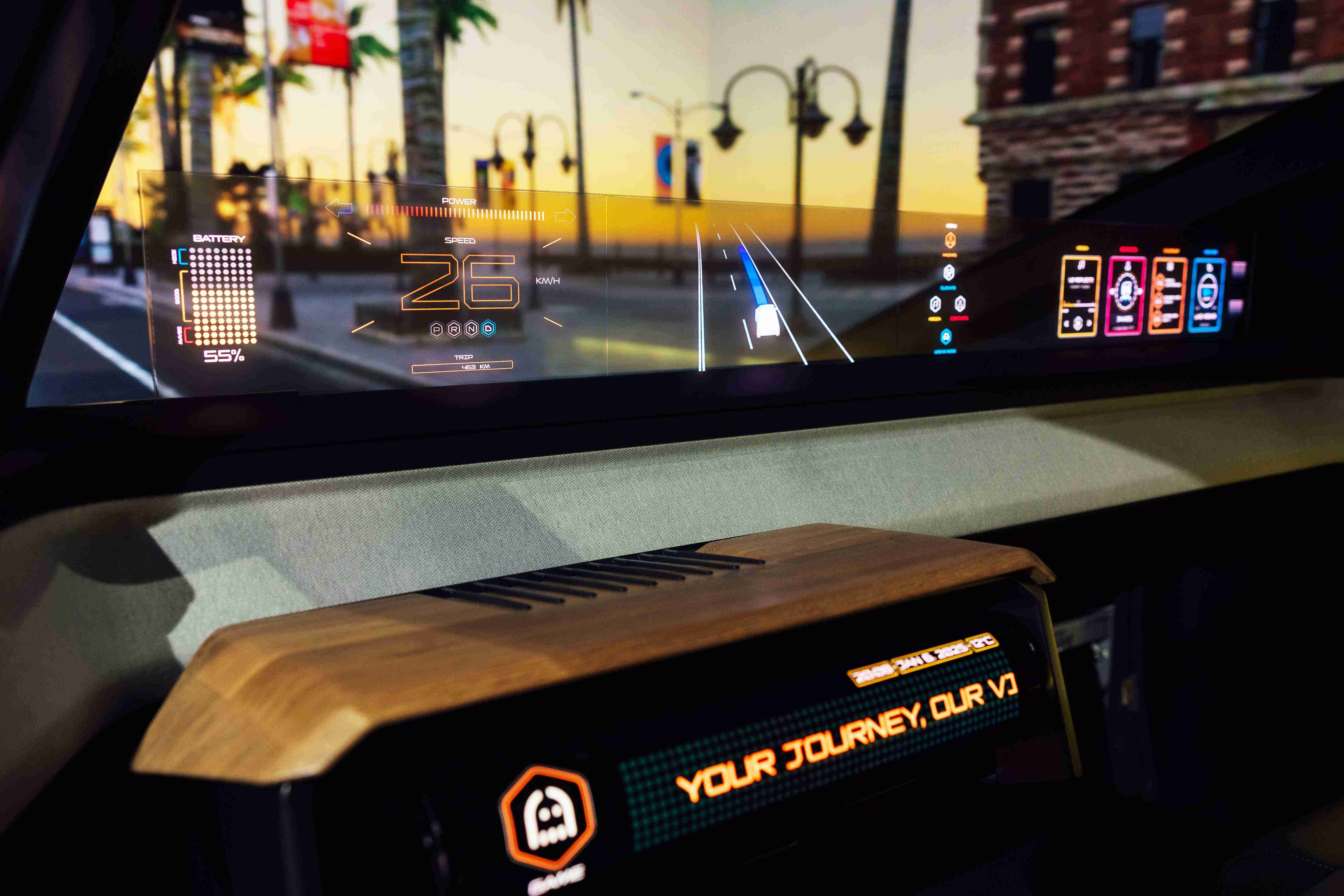幻境全景天幕(Virtual Sky Canopy)将无缝拼接大型化的透明Micro LED显示器融入至天窗,,,,带来沉浸式体验,,将人机介面扩展至整个座舱。。。。