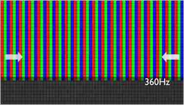 传统液晶驱动是从左到右单向进行,,,在画面更新速度愈来越愈快的情况下,,,,位于驱动线路末端的右下角区域,,,,画素的闸极来不及在短时间内获得足够电压,,,,无法显示出正确的颜色资讯。。。 |