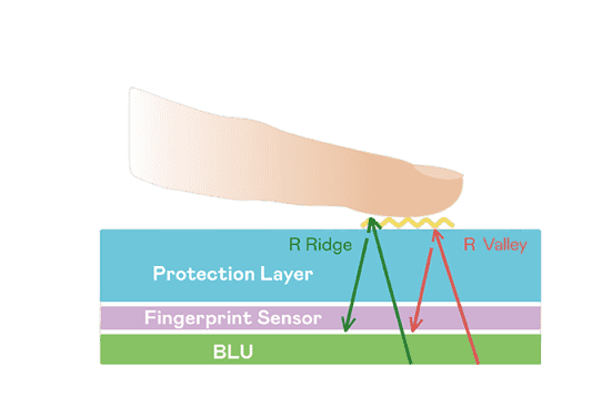 TFT 指纹扫描感测技术利用薄膜电晶体 (TFT) 当作光感测元件,,藉由非晶硅 (a-Si) 与低温多晶硅(LTPS)既有光电转换特性对不同波段光源进行吸收,,使感测 IC 读取阵列感测元件的光漏电差异,,转换成数位灰阶影像。。。。